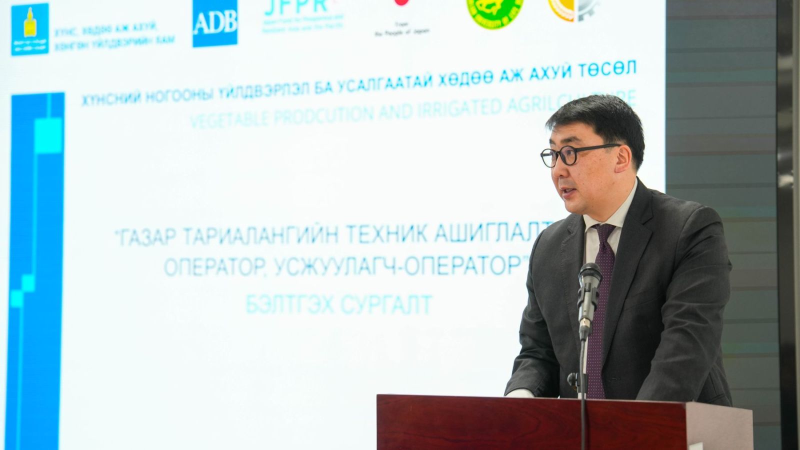 ХХААХҮЯ-ны Төрийн нарийн бичгийн дарга Т.Жамбалцэрэн хөтөлбөрийн нээлтэд оролцож, “Монгол Улсын хэмжээнд газар тариалангийн услалтын систем нь ус ашиглалтын хувьд үр ашиг багатай, хуучирсан, дэд бүтцийн хувьд тогтвортой бус, засвар үйлчилгээнд хөрөнгө оруулалт хийгдээгүй, олон жил орхигдсон байсан. Нийт газар тариалангийн 400,000 га газраас ойролцоогоор 54,000 га газар усалгаатай байгаа тул Засгийн газраас 2030 он гэхэд усалгаатай талбайн хэмжээг 120,000 га-д хүргэхээр төлөвлөн ажиллаж байна. Салбарын яам услалтын системүүдийг сайжруулах, ус ашиглагчдын чадавхийг бэхжүүлэх, усалгаатай тариалангийн талбайг нэмэгдүүлэх замаар ногоочдын уур амьсгалын өөрчлөлтөд өртөмтгий байдлыг бууруулах, усны нөөцийг зөв зохистой ашиглах менежментийг бий болгох зорилго тавин ажиллаж байгаа. Тухайлбал, “Хүнсний ногооны үйлдвэрлэл ба усалгаатай хөдөө аж ахуй” төсөл хүрээнд 7 аймгийн 10 суманд услалтын системийг сэргээн засварлаж шинэчлэн сайжруулснаар уур амьсгалын өөрчлөлтөд тэсвэртэй, үр ашигтай услалтын системийн хэмжээг 3031 га-аар нэмэгдүүлэх юм. Цаашид шинээр бий болгосон услалтын системийг үр ашигтай ажиллуулах, нутаг орондоо технологийн шинэчлэлийг нутагшуулахад газар тариалангийн техник ашиглалт оператор, усжуулагч-операторуудын үүрэг оролцоо өндөр байх болно” хэмээн онцолсон юм.
